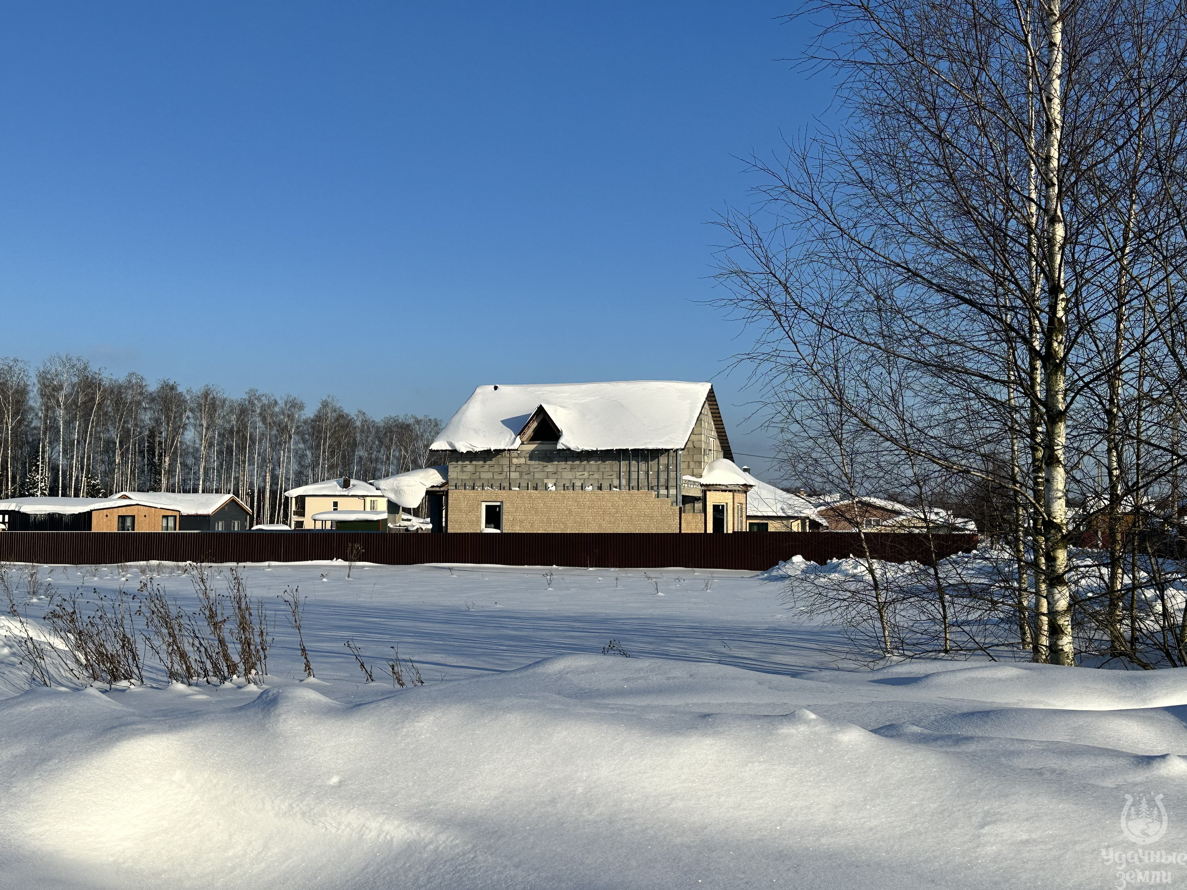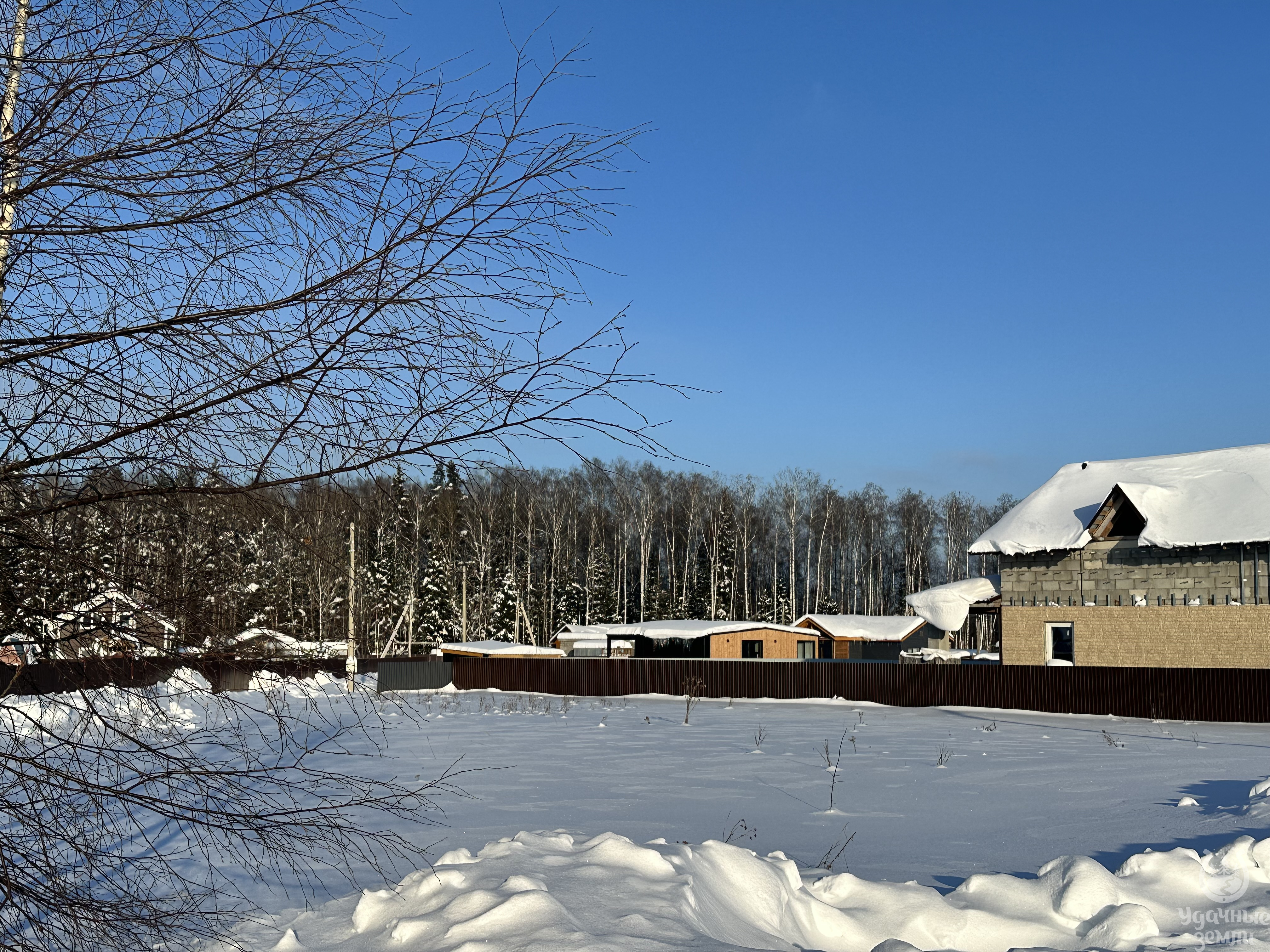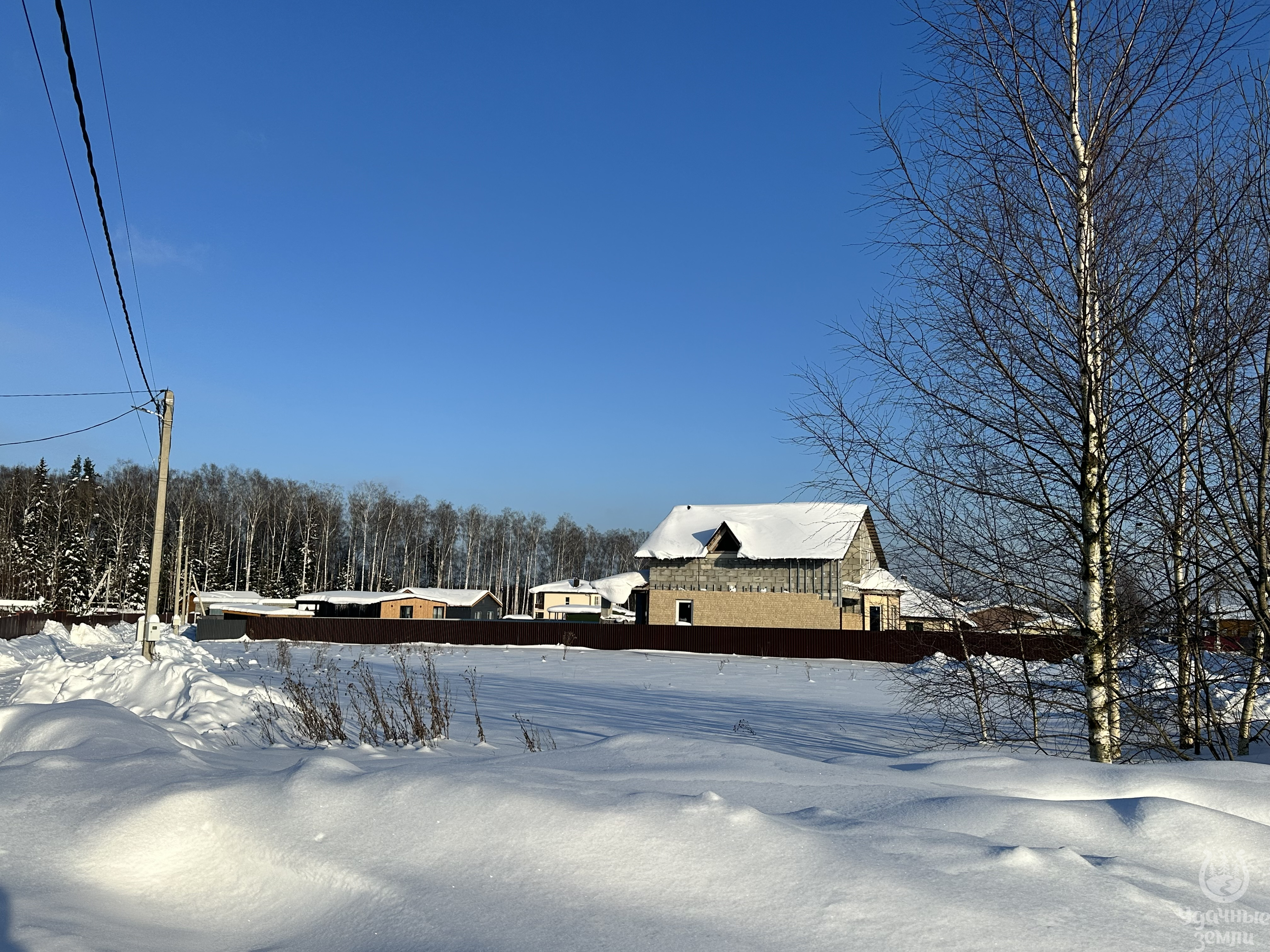 О компании «Удачные Земли» узнали от соседей. Ознакомились с информацией о посёлке «Приозерские дачи» на сайте, где всё подробно описано об этом посёлке. Есть вода (круглый год), газ, электричество по границе участка, интернет.