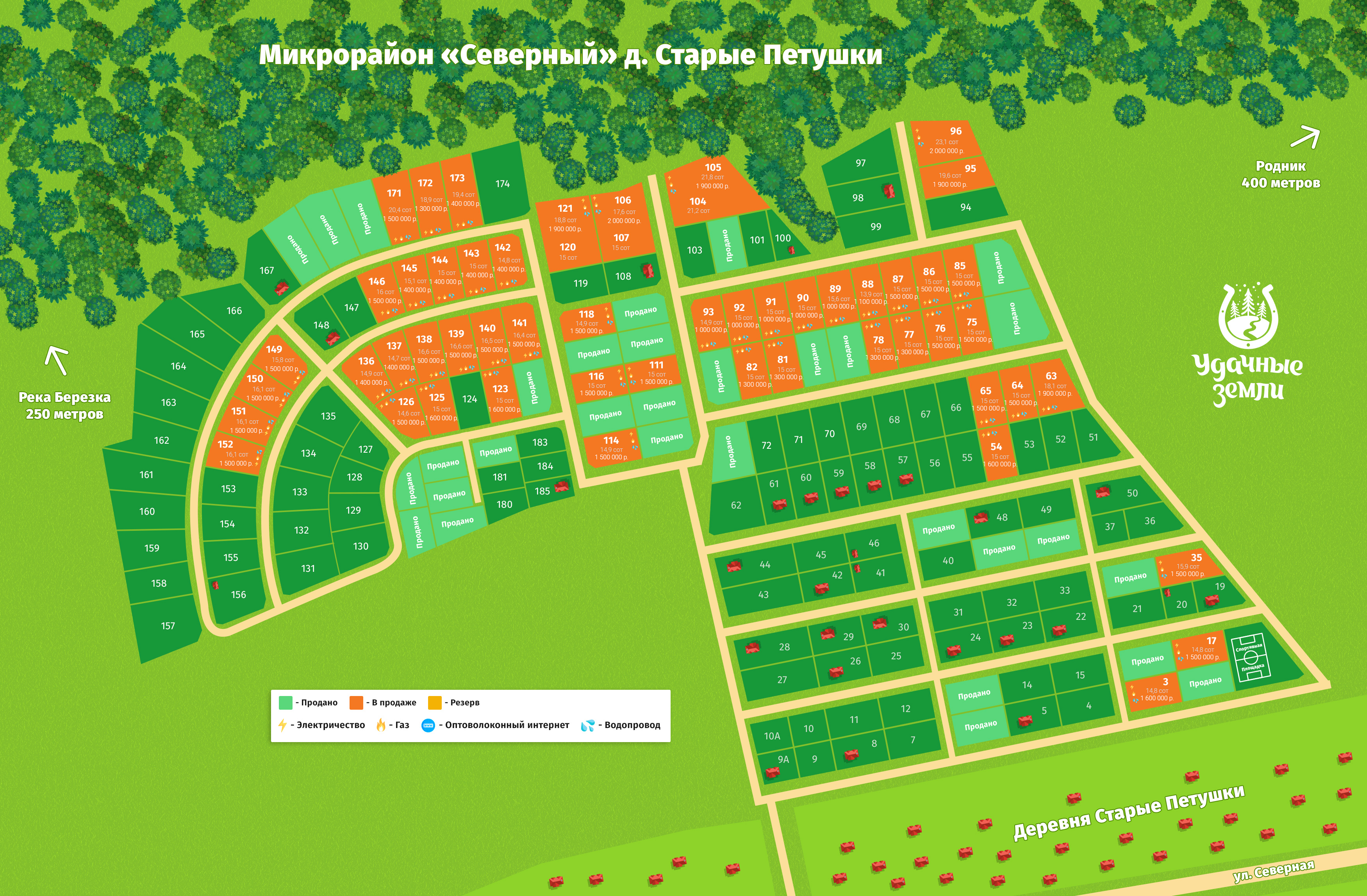 Средняя стоимость «сотки» – 45 000 руб. Земельные участки продаются вместе с пакетом коммуникаций.